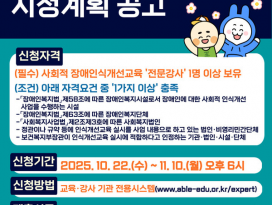 | 223 |  | 복지부·개발원, 2026년도 장애인식개선 교육기관 모집 | 관리자 | 374 | 2025년 10월 22일 |