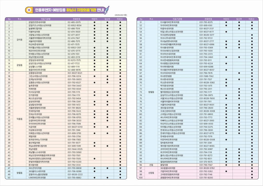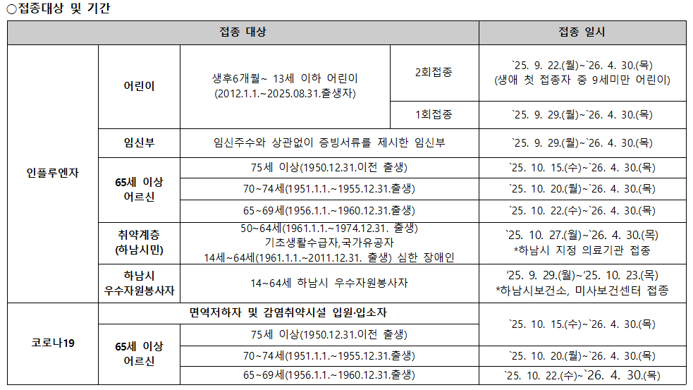 ○문의: 하남시 보건소 예방접종실 ☎031-790-6575/ 미사보건센터 예방접종실 ☎031-790-6560