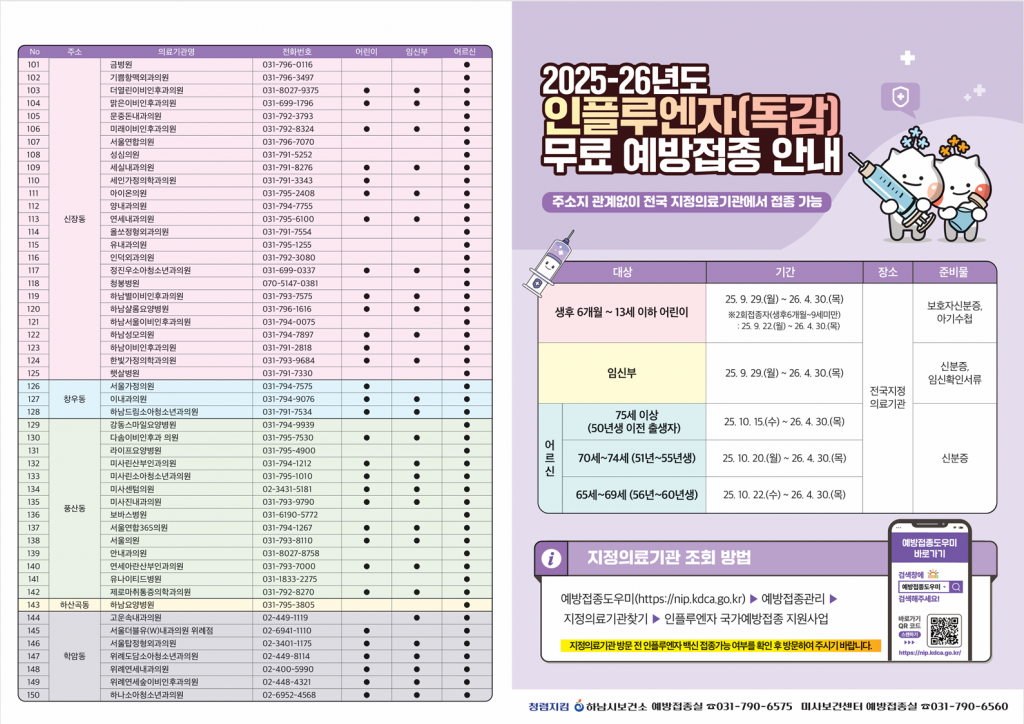 2025-2026절기 인플루엔자(독감) 및 코로나19 무료 예방접종을 실시합니다.