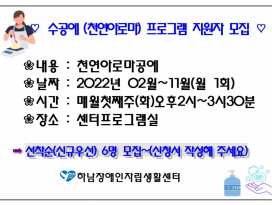 수공예(도자기, 천연아로마) 프로그램 지원자 모집♡
