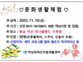 2023년 3차 문화생활체험(충남 아산 피나클랜드 수목원) 안내(2023.11.10)